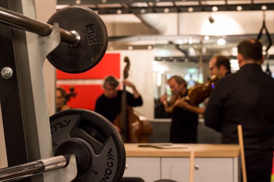 Inmitten von Hanteln und Gewichten ertönt klassische Musik. Foto: Alex Povel
