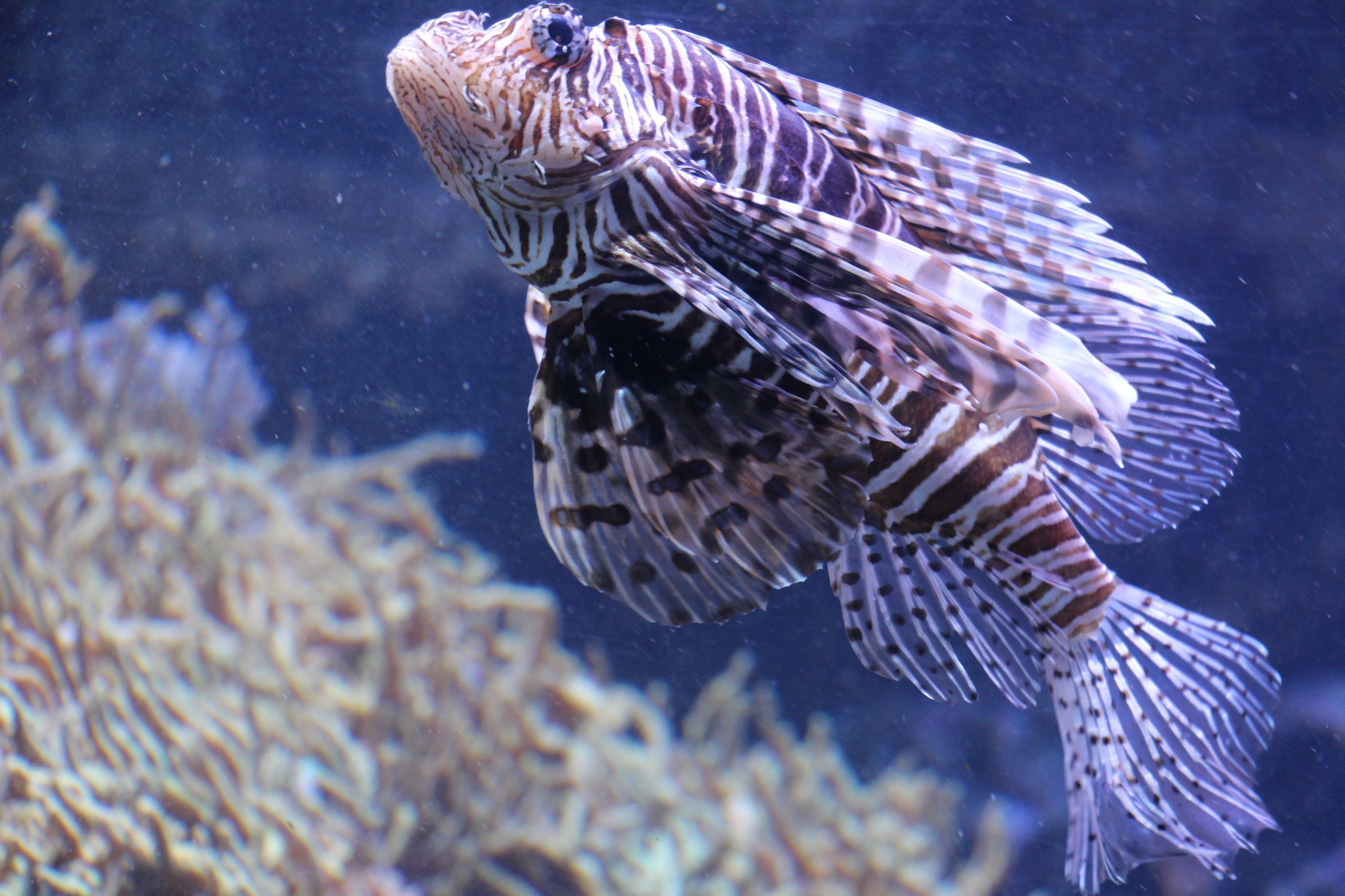 Der Rotfeuerfisch enthält in seiner Rückenflosse ein starkes Gift. Hinter den Glasscheiben des Aquariums ist er jedoch schön anzugucken. Foto: Karoline Gebhardt