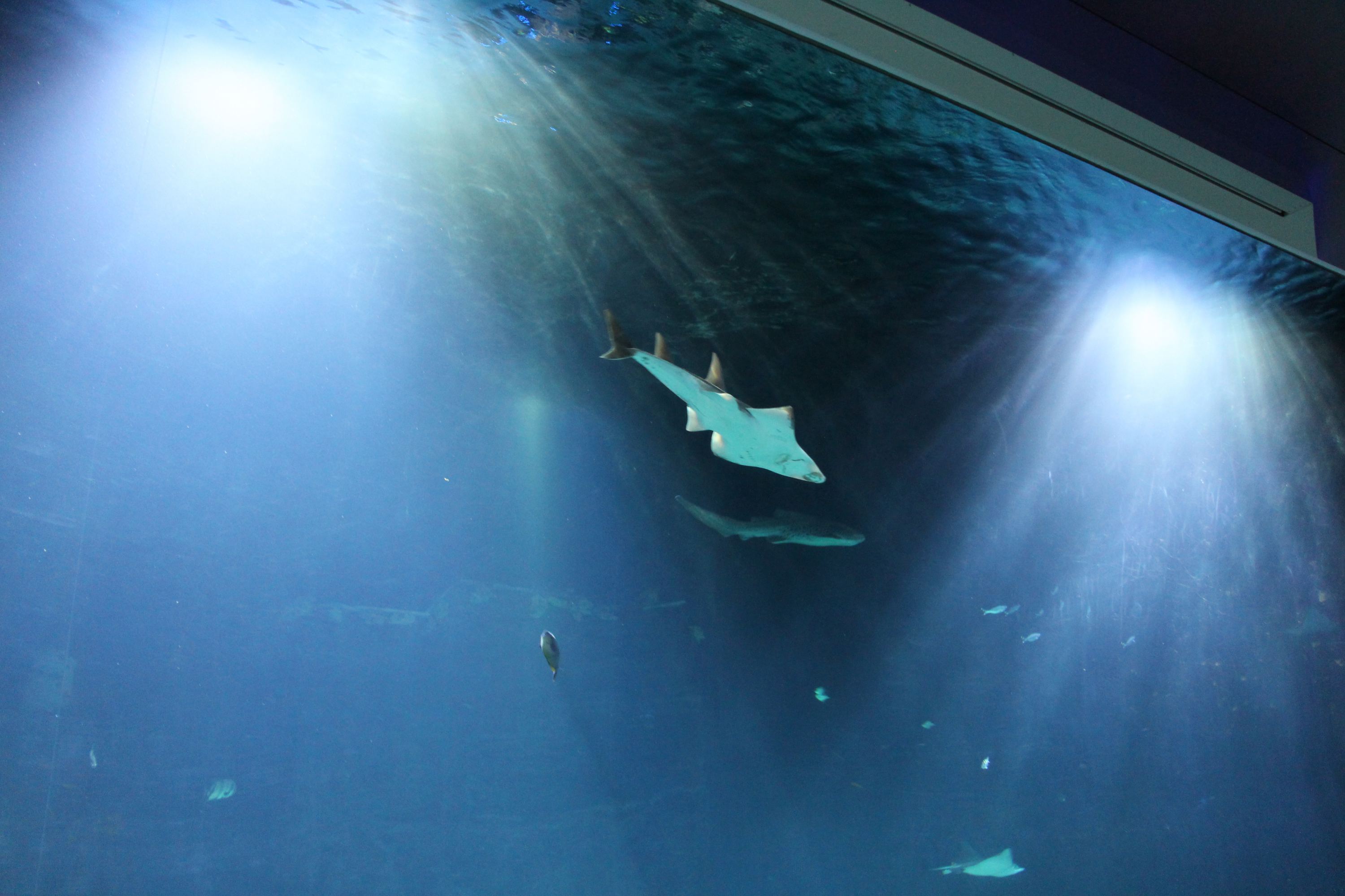 Das Hai-Atoll im Tropen-Aquarium: Es ist das Highlight. Kinder tummelten aufgeregt im Raum herum und pressten ihre Näschen an die Glasscheiben. Foto: Karoline Gebhardt