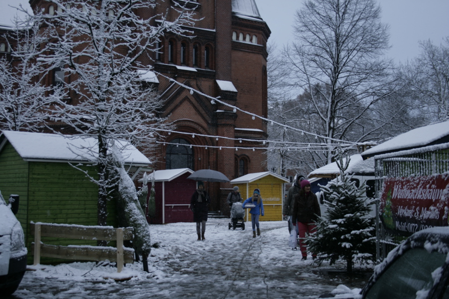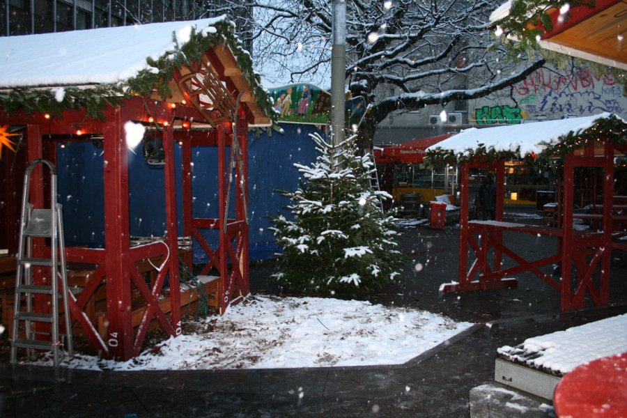 Weihnachtsmarkt an der Apostelkirche vor der Eröffnung voriges Jahr. Foto: Anja von Bihl