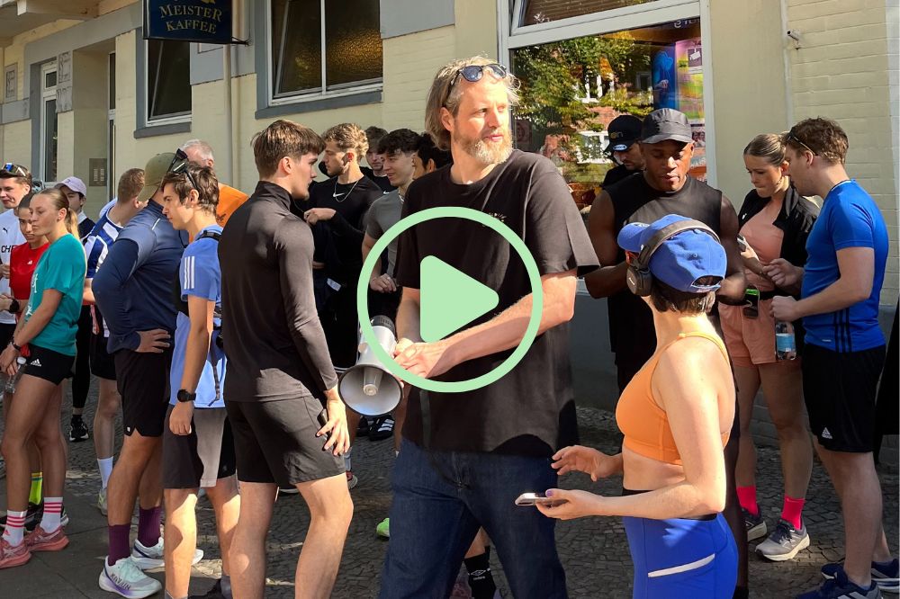 Beim Run4Franz richtete der LOKL-Geschäftsführer Jan Hildebrandt sein Wort zum Franzbrötchentag an die Teilnehmenden.