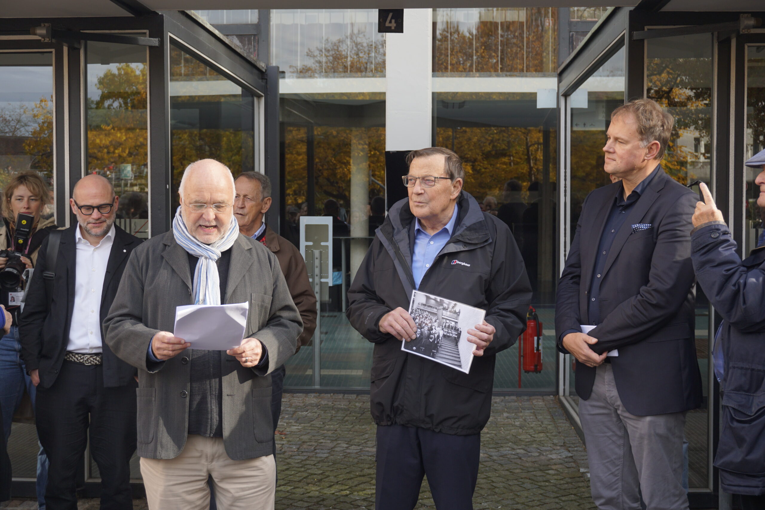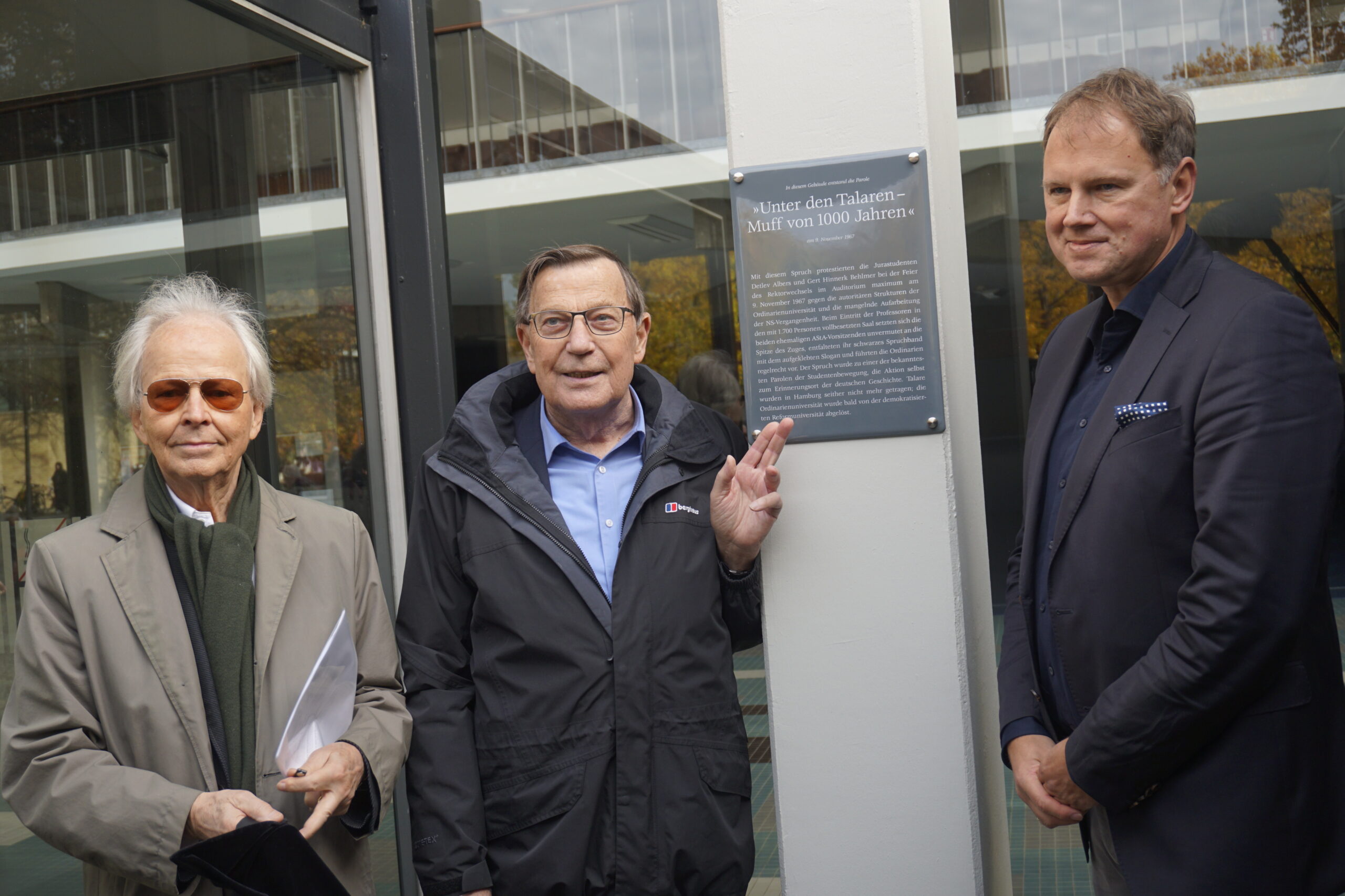 Neben Gedenktafelstifter Peter Hess und Universitätspräsident Hauke Heekeren war Behlmer, einer der Initiatoren der Protestaktion, anwesend.