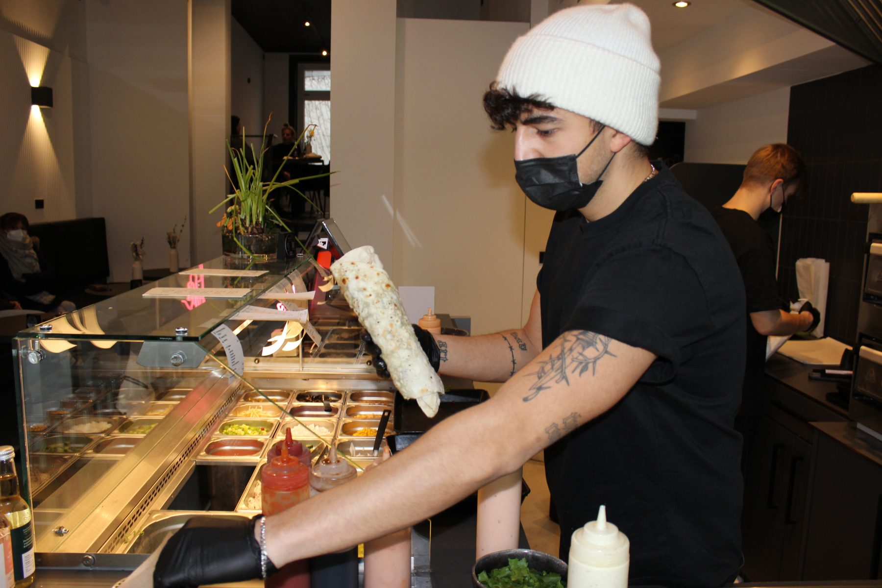 Nur eine Sache bereitet Taycan etwas Kopfzerbrechen – und das ist der Preis, den er für seine „Vöner“ aufrufen muss. „Die Leute sind es gewohnt, dass Döner total günstig sind und 3,50 Euro kosten.“ Damit kann er nicht mithalten, den Klassiker gibt es bei ihm für 8,50 Euro. Dieser relativ hohe Preis ist auch der Grund, warum er nicht die gesamte Zutatenliste seiner „Vöner“ in Bioqualität anbieten kann. „Dann müssten wir mindestens 11,50 Euro nehmen und das würde wohl niemand für einen Döner zahlen“, fürchtet er. Doch vielleicht, so seine Hoffnung, gibt es auch hier in Zukunft mehr Bereitschaft bei den „Vöner“-Fans.