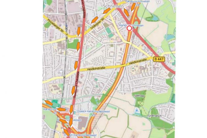 Grund für die unplanmäßige Sperrung der A7 ist eine dringend erforderliche Sanierung der Asphaltdecke im Baustellenbereich. Während der siebenstündigen Sanierungsarbeiten wird es eine ausgeschilderte Umleitung geben. Die U42 leitet Autofahrer über Schleswiger Damm, Oldesloer Straße und Holsteiner Chaussee um.