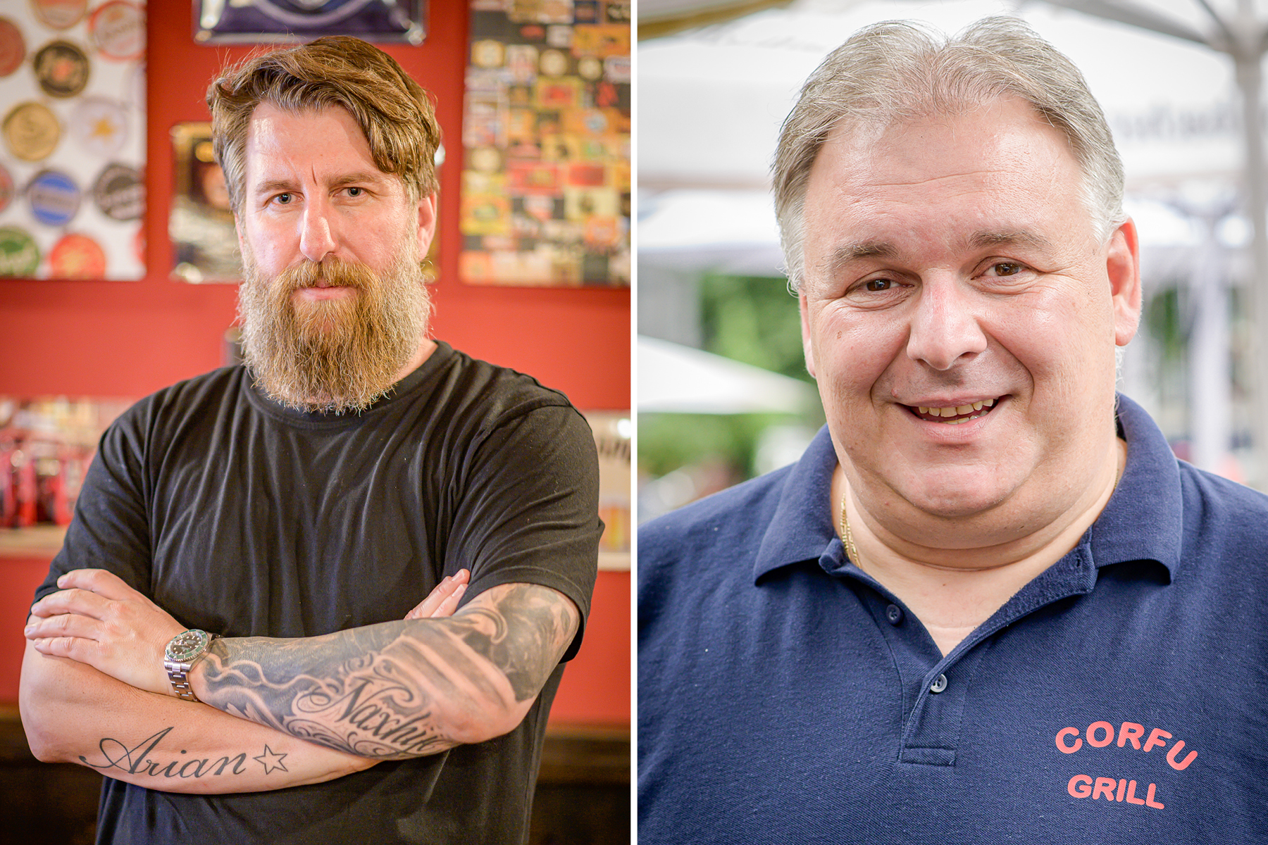 Im Old MacDonald gegenüber gehen die letzten Bestellungen ein. Um 23 Uhr ist Schluss. „Als ob die vier Jungs in 20 Minuten zwei Pitcher trinken”, raunt ein Kellner seinem Kollegen zu. Sie wollen pünktlich dicht machen, bloß keinen Ärger mit den Anwohnern. Auch gegenüber beim griechischen Corfu-Grill ist noch gute Stimmung im überdachten Außenbereich, zwischendurch gibt es Ouzos aufs Haus – abends sind die Tische oft bis auf den letzten Platz gefüllt. Aber auch hier ist um 23 Uhr ist Schluss.