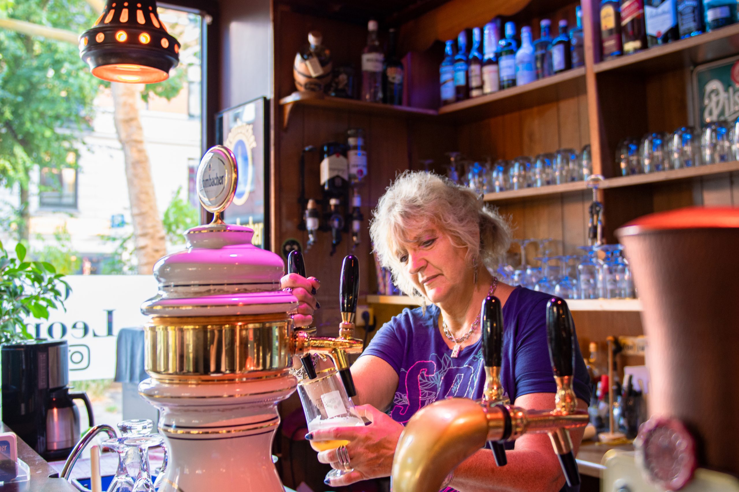 Im Old MacDonald gegenüber gehen die letzten Bestellungen ein. Um 23 Uhr ist Schluss. „Als ob die vier Jungs in 20 Minuten zwei Pitcher trinken”, raunt ein Kellner seinem Kollegen zu. Sie wollen pünktlich dicht machen, bloß keinen Ärger mit den Anwohnern. Auch gegenüber beim griechischen Corfu-Grill ist noch gute Stimmung im überdachten Außenbereich, zwischendurch gibt es Ouzos aufs Haus – abends sind die Tische oft bis auf den letzten Platz gefüllt. Aber auch hier ist um 23 Uhr ist Schluss.